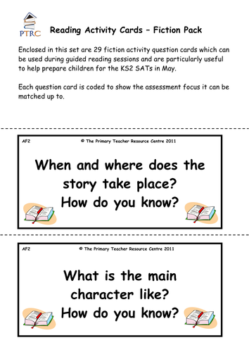 Reading Activity Cards Fiction Pack By Resourcecentre Teaching