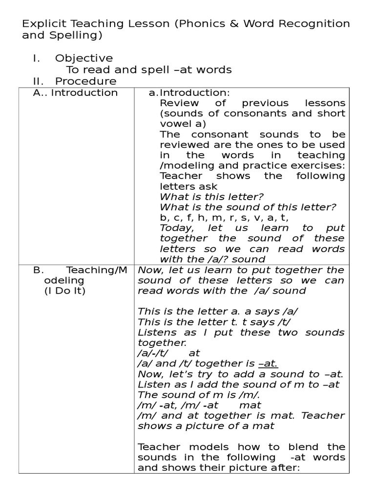 Explicit Teaching Lesson Phonics Word Rec And Spelling Phonics