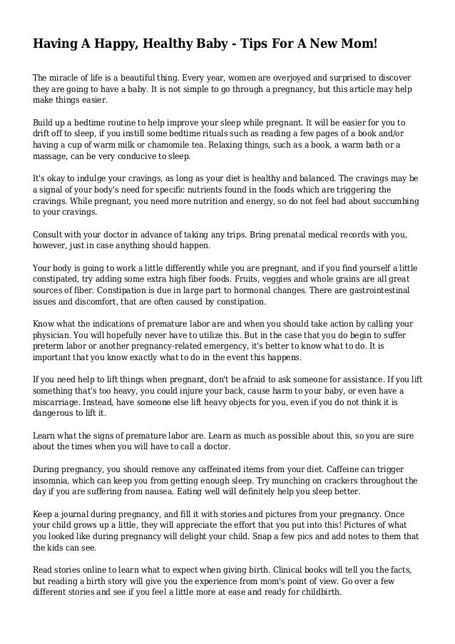 Having A Happy Healthy Baby Tips For A New Mom
