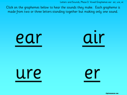 Phonics Letters And Sounds Phase 3 Vowel Graphemes Ear Air Ure