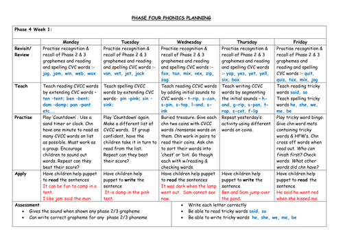 Phase 4 Phonics Planning Weeks 1 4 By Michelle99 Teaching Resources