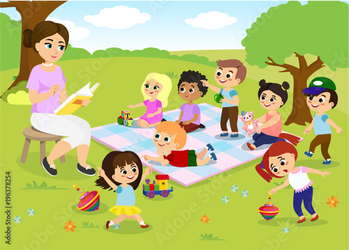 Childrens Activity Kinder Garden Reading Books Stock Vector Royalty