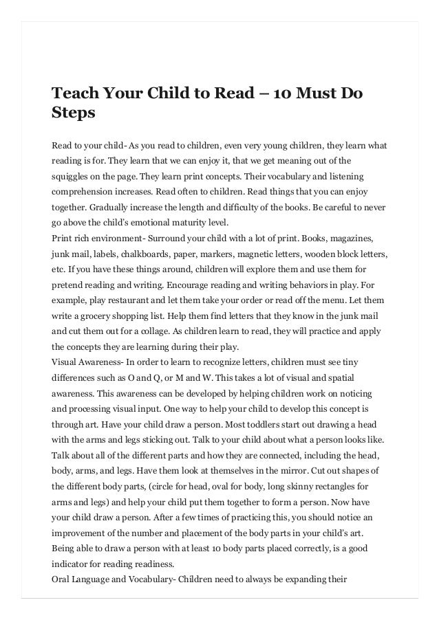 Teach Your Child To Read 10 Must Do Steps