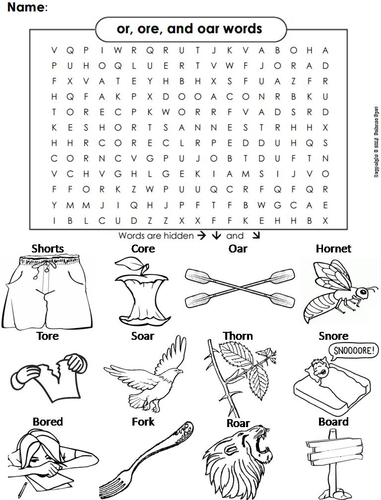 Or Ore And Oar Words Phonics Worksheet Digraphs Word Search