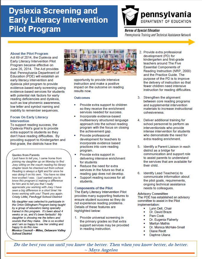 Pennsylvania S Dyslexia Screening And Early Literacy Intervention