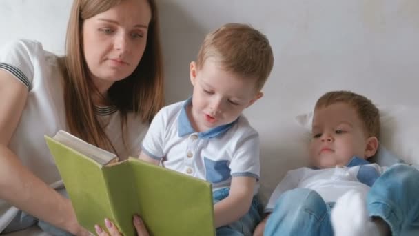 Family Mom And Two Twin Brothers Toddlers Read Books Laying On The
