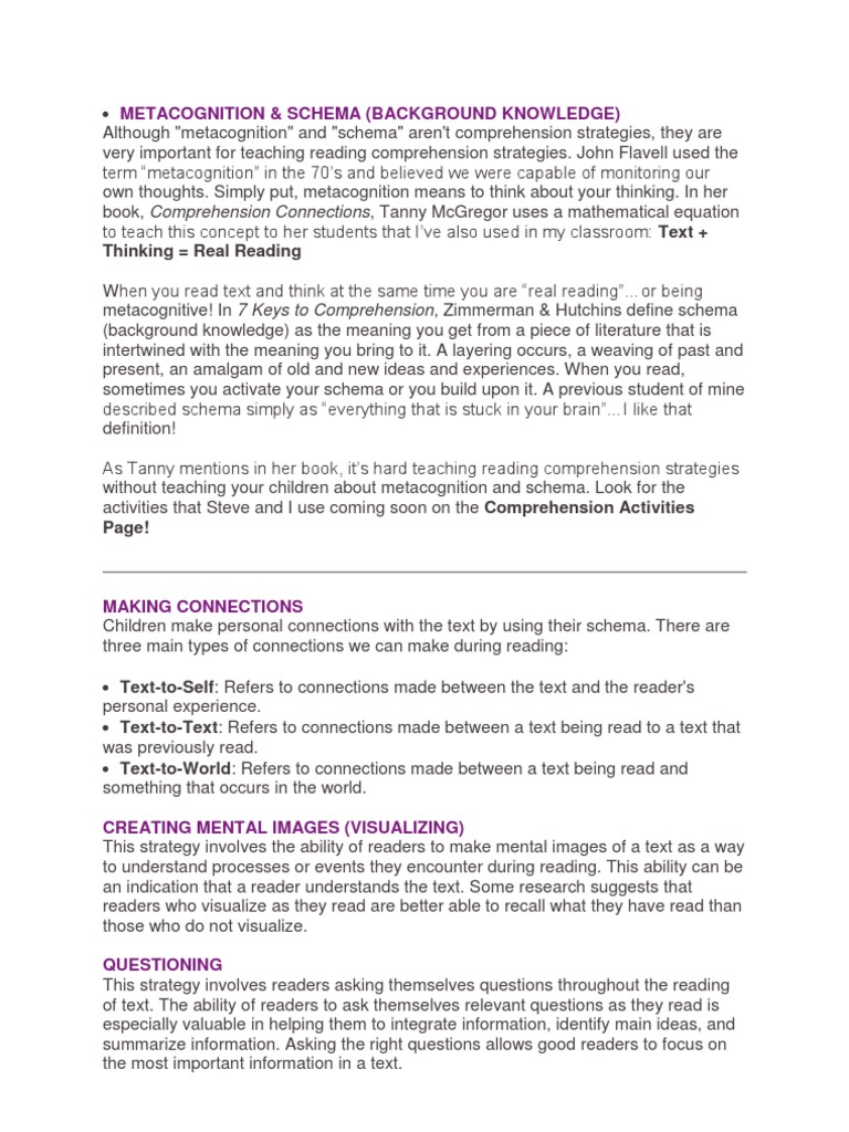 Reading comprehension strategies this 10 part unit contains everything you need to teach specific reading comprehension strategies to your students. You can use this page as a mini lesson. Modeling through think alouds is the best way to teach all comprehension strategies.