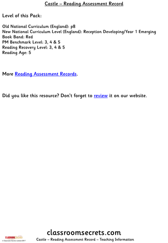 Reading Assessment For Reception Red Book Band By Classroomsecrets
