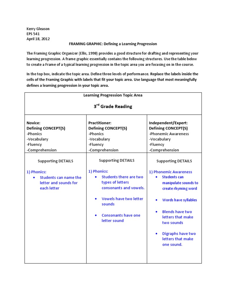 3rd Grade Reading Learning Progression Phonics Reading Comprehension