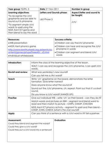 Ch Phonics Lesson Plan By Vanadesse Teaching Resources