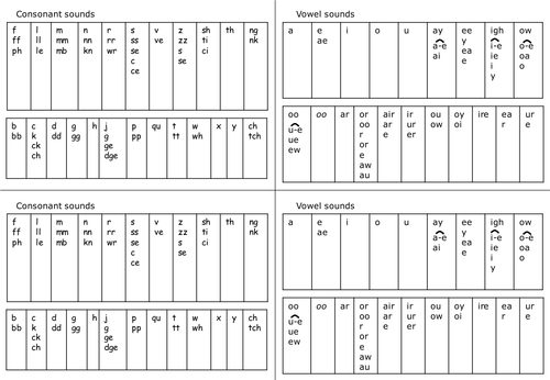 The chart above contains mostly letter combinations that form unique sounds phonemes and that your child will not be able to. The charts may be used for initial instruction or for a structured review of the sounds and spellings used in systematic sequential phonics programs. You might also like.