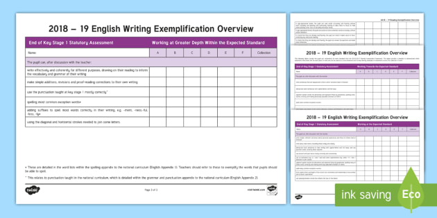 Ks1 Reading And Writing Exemplification Checklist Overview Primary