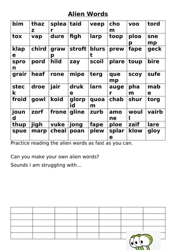Phonics Alien Words Practice By Katherineyeats Teaching Resources