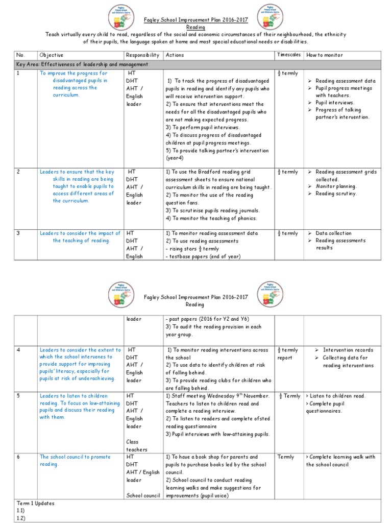 Reading Action Plan 2016 2017 Reading Process Phonics