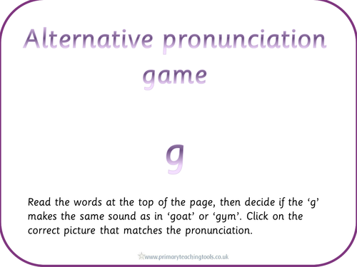 Homepage key stage 1 year 1 year 2 english ks1 phonics activities and games dfe phonics letters and sounds phase 5 phase 5 visual aids phase 5 alternative pronunciation sound cards with pictures. Alternative pronunciation of o sorting game 3 member reviews classic collection click for more information. Sound sorting hard and soft g games.