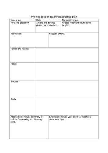 Blank Phonics Plan By Vanadesse Teaching Resources