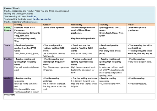 Weekly Phonics Plans Phases 1 6 By Shakhah Teaching Resources