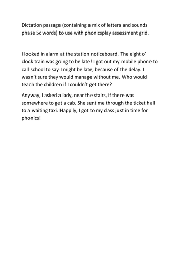 Dictation Passage To Use For Assessment By J M Powell Teaching