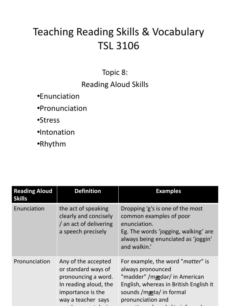 Reading Aloud Skills Tsl 3106 Stress Linguistics English Language