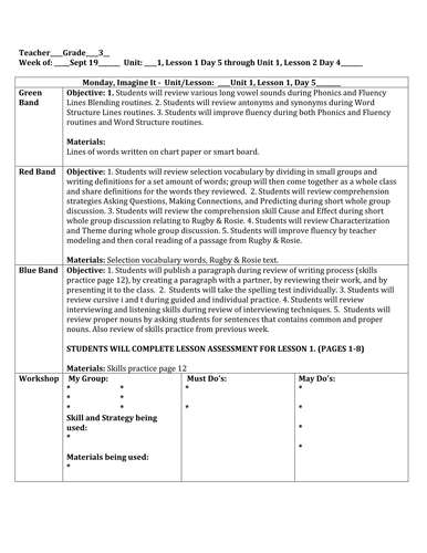 Imagine It Unit 1 Grade 3 Lesson Plans By Mrsl132 Teaching