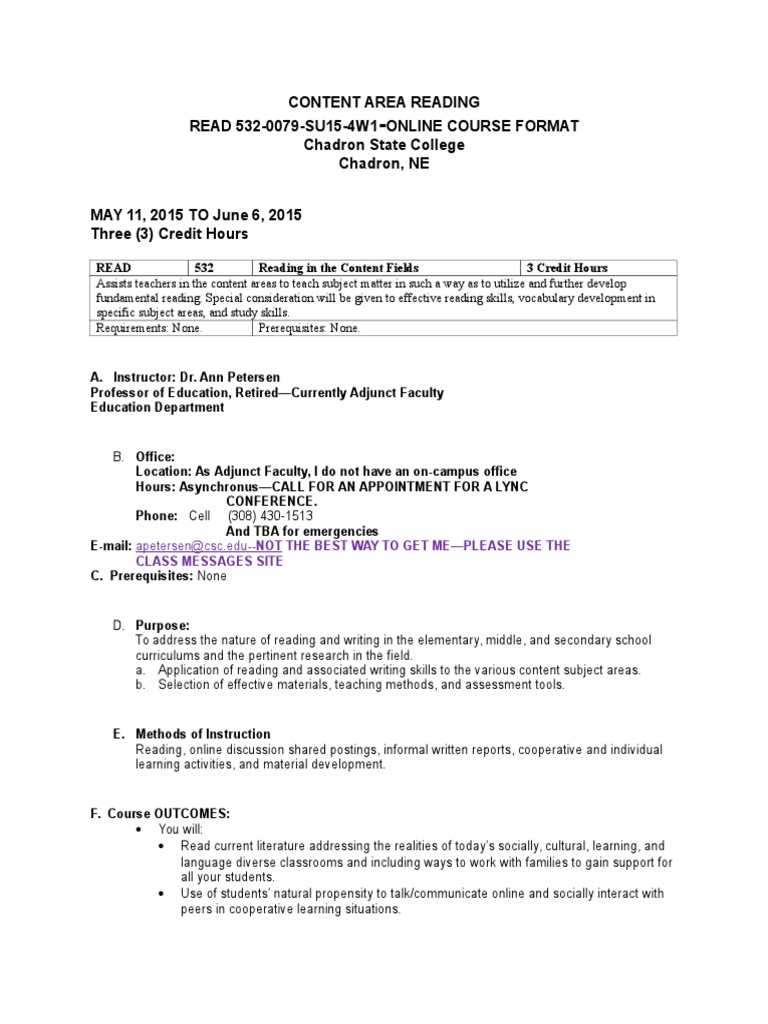 Content Area Reading Old Syllabus Competence Human Resources