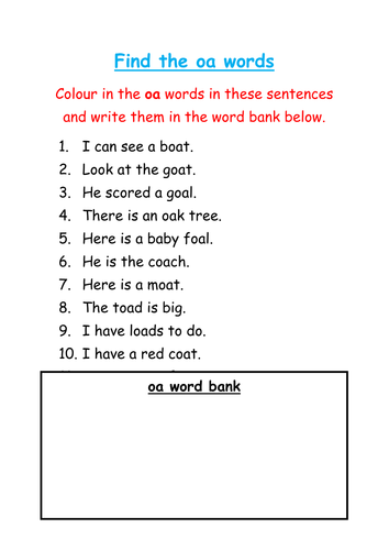 Words With Oa Phonics Activities And Printable Teaching Resources