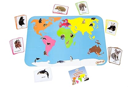 Use a coordinated book puzzle within a puzzle and matching flashcards to encourage fun educational play. Teach my toddler continents and animals introduces your toddler to 7 continents of the world and 21 animals that live on those continents. Each continent has its own color asbwell as the associate director animals.