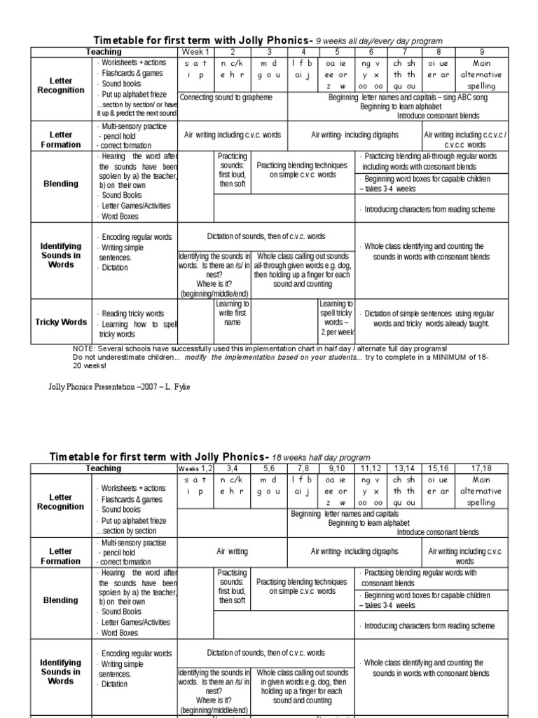 Timetables For Firwst Years With Jolly Phonics 21 Views