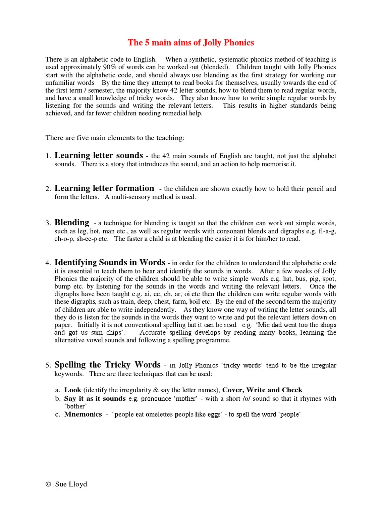 B The 5 Main Aims Of Jolly Phonics Phonics 33 Views