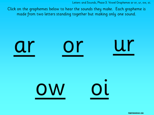 Phonics Letters And Sounds Phase 3 Vowel Graphemes Ar Or Ur Ow